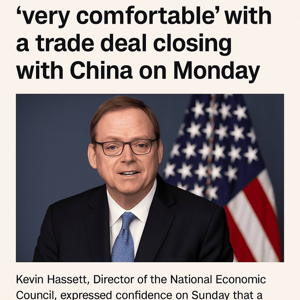 Kevin Hassett, Director of the National Economic Council, expressed confidence on Sunday that a trade deal between the United States and China would be finalized on Monday in London. Hassett’s remarks on CBS’ “Face the Nation” came after President Donald Trump stated that he had a “very good” conversation with Chinese leader Xi Jinping and that talks with China were “very far advanced.”